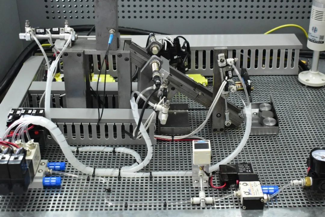 機(jī)電一體化考生的工作任務(wù)是根據(jù)工作訂單的修改要求補(bǔ)充完成在準(zhǔn)備階段構(gòu)建的機(jī)電一體化子系統(tǒng),該系統(tǒng)由帶顯示和操作單元的配電箱及帶機(jī)械部件、電氣動(dòng)元部件的網(wǎng)孔板組成。學(xué)生們首先通過(guò)運(yùn)用鋸削、挫削、車(chē)削、銑削、鉆孔、锪孔、鉸孔、攻螺紋等加工方式,按照德國(guó)標(biāo)準(zhǔn)和工藝要求,完成了機(jī)械部分的零件加工和部件裝配。接著再將機(jī)械部件和各電氣動(dòng)元器件安裝在規(guī)定的網(wǎng)孔板上,確保電線、氣管的排布方式規(guī)范美觀。同時(shí)還進(jìn)行了配電箱的制作:元器件的擺放、線槽導(dǎo)軌的尺寸、內(nèi)部接線的排布及承重能力均嚴(yán)格按照?qǐng)D紙要求,處處體現(xiàn)德國(guó)標(biāo)準(zhǔn)的嚴(yán)謹(jǐn)性。