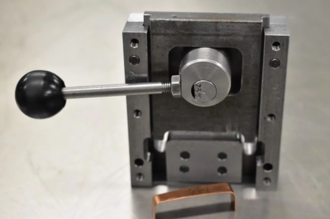 此次模具考試中的小型折彎裝置是由多個(gè)零件加工并裝配而成,它是一個(gè)綜合性的高難度任務(wù),學(xué)生需要通過(guò)劃線、銼削、鉆削、螺紋加工、車(chē)削、銑削等一系列的手動(dòng)加工和機(jī)械加工工藝完成任務(wù)。此外,學(xué)生還需要獨(dú)立自主地分析各個(gè)零部件的圖紙,選擇所需的刀具和量具,并根據(jù)不同零件的特點(diǎn)和要求安排不同的加工工藝,接著根據(jù)加工計(jì)劃實(shí)施具體的加工步驟,對(duì)所有加工的零件進(jìn)行自檢,判斷零件是否合格,最后再對(duì)整個(gè)裝置進(jìn)行裝配和修配,使該裝置達(dá)到最優(yōu)化的狀態(tài)并實(shí)現(xiàn)其功能。